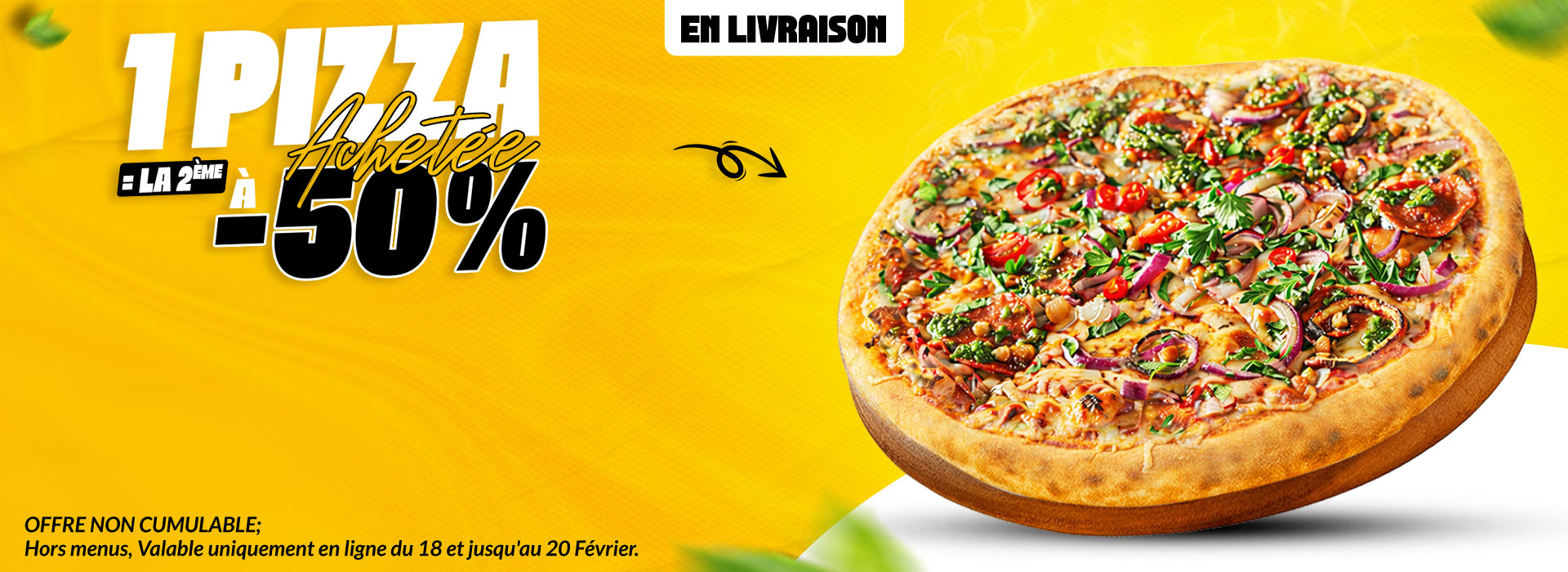 1 Pizza SUPER ou MEGA achetée = la 2ème Offerte