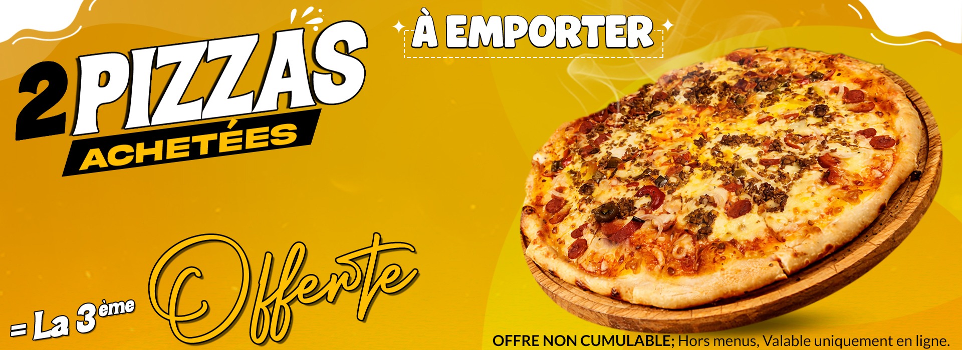 1 Pizza SUPER ou MEGA achetée = la 2ème Offerte