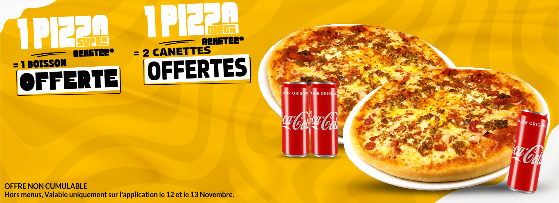 1 Pizza SUPER ou MEGA achetée = la 2ème Offerte